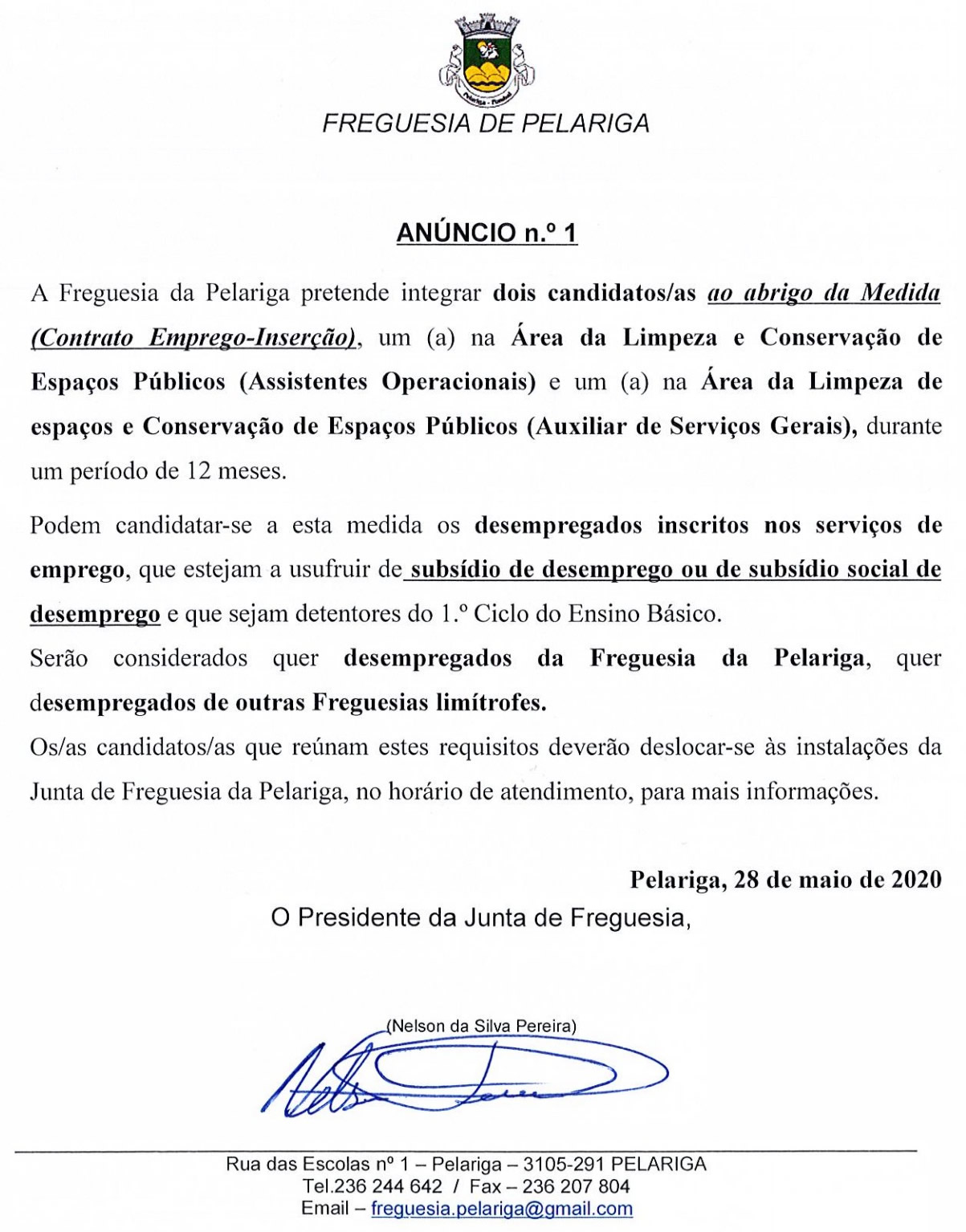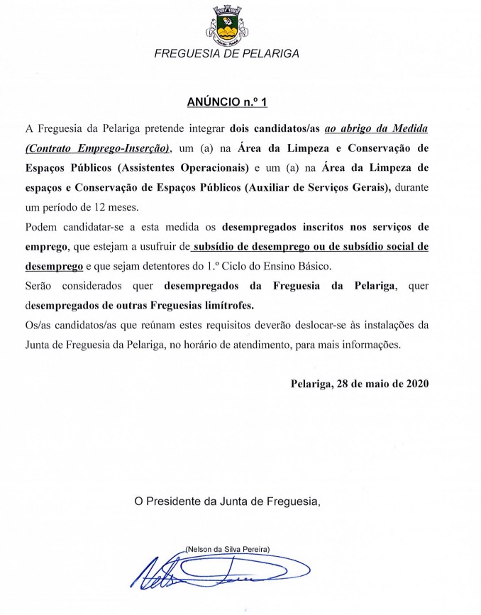 ANÚNCIO 1 - Integração de dois candidatos/as na categoria de assistentes operacionais