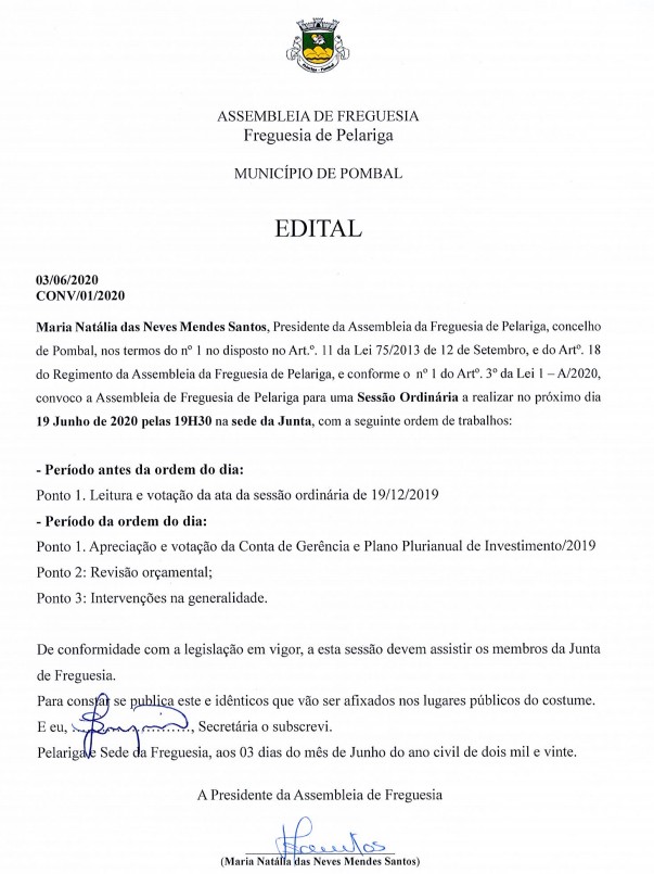 Convocatória - Sessão ordinária - Assembleia de freguesia