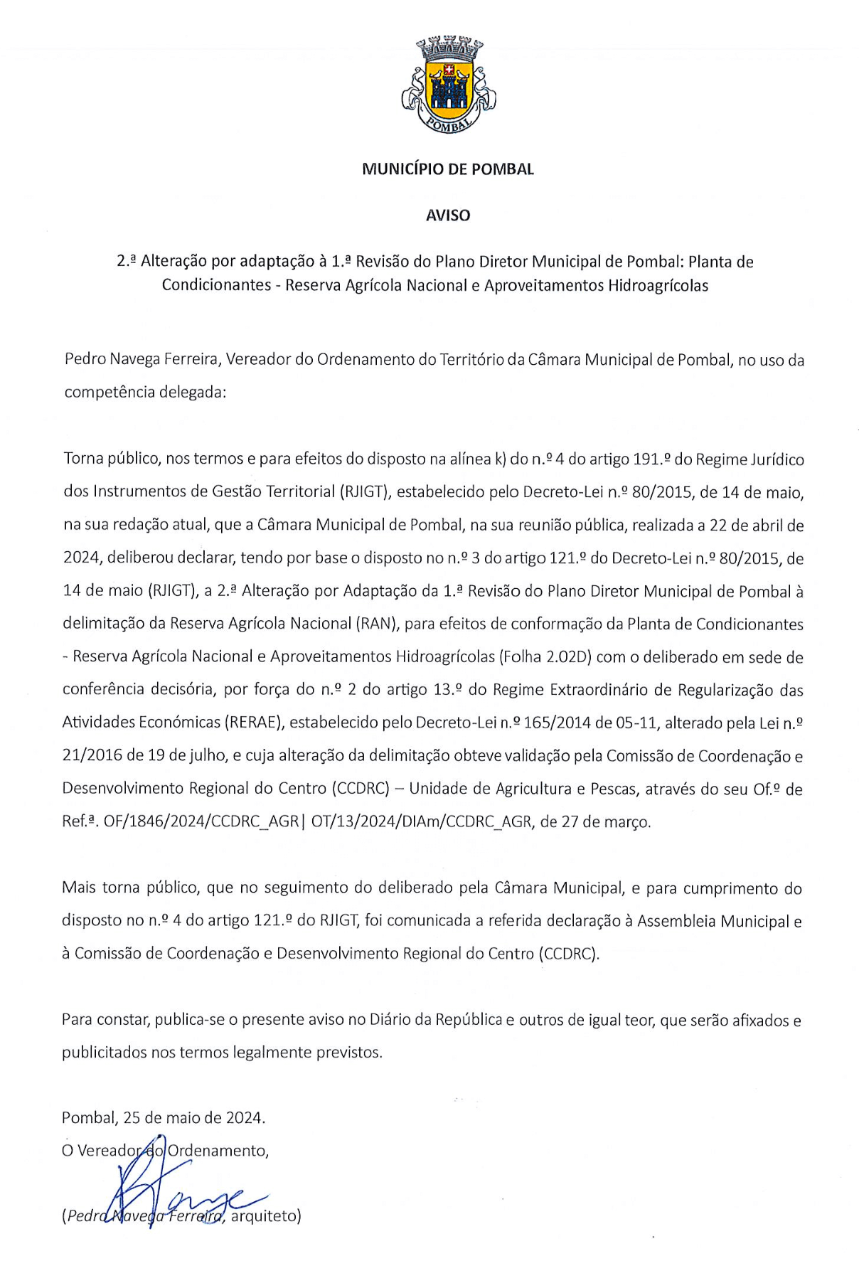AVISO - 2.ª Alteração por adaptação à 1.ª Revisão do Plano Diretor...